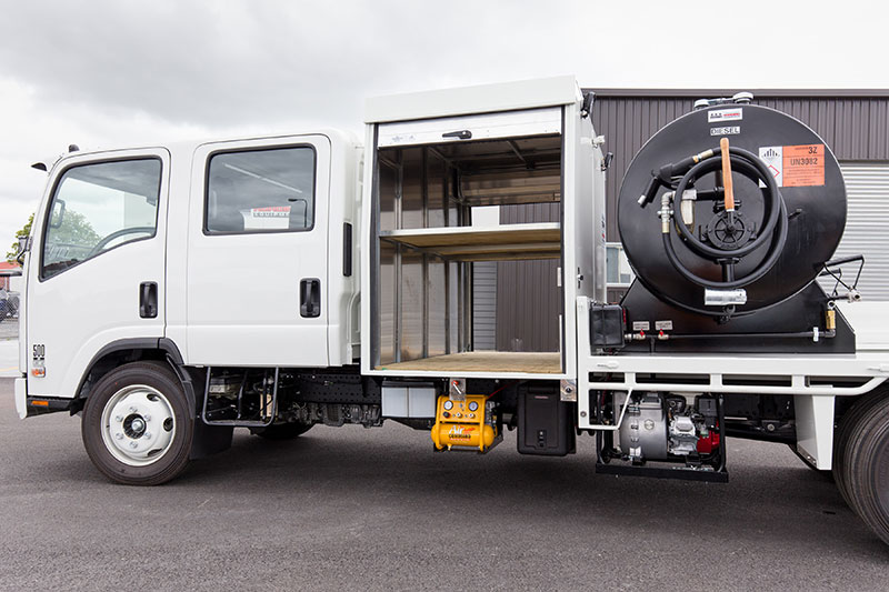 The asphalt tack coater is ideally suited for completing CAT60 tack coat and membrane seals for asphalt paving work. With diesel and water tanks along with a double cab, this unit is the ideal asphalt paving support vehicle.